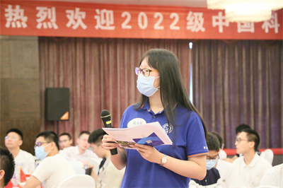 这位小男孩即将到地空学院学习。他被作为志愿者派去迎接李曙光院士(地空学院教授)。好几位新生提问,得到同一桌的赵忠贤与李曙光院士详尽的回答。有一位新生好奇:地球科学研究什么?李曙光院士给了他全景式的解读。
